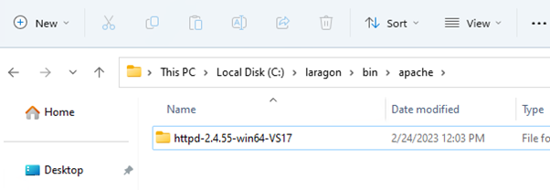 - Napraviti extract .zip datoteke i smjestiti Apache24 folder u C:\laragon\bin\apache.