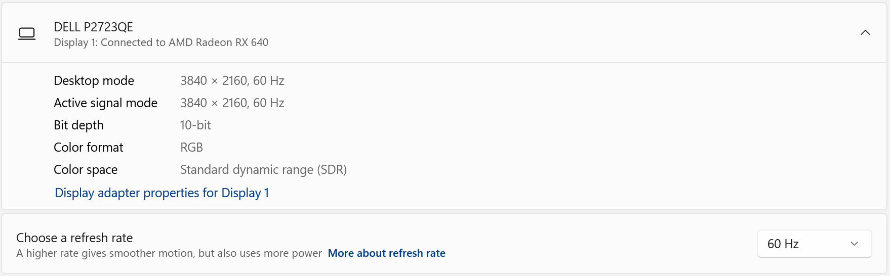 Prvo što sam trebao namjestit je brzina osvježavanja ekrana (Refresh rate) da bude minimalno na 60 Hz za 4K rezolucije. Jer mi je u startu bilo na 30 Hz i to je bilo grozno za raditi.