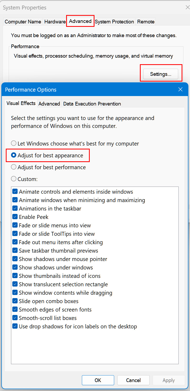 Ovdje sam odabrao opciju Adjust for best appearance.